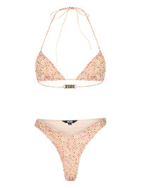 bead-embellished tulle-overlay bikini Highlights - Almond beige/multicolour - Stretch-design - Tulle overlay - Bead embellishment - Two separate pieces - Top: - Triangle cup - Plunging v-neck - Halterneck tie fastening - Rear clasp fastening - Bottom: - High cut - Thong style - Be mindful to try on swimwear over your own garments. Made in Italy Composition Polyamide 100% Washing instructions Hand Wash