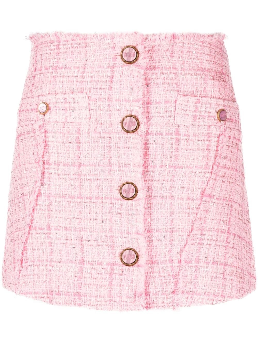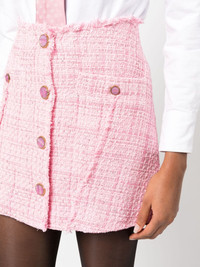 button-up tweed miniskirt Highlights - Rose pink - Tweed - Check pattern - Frayed brim - Logo-debossed buttons - Two front welt pockets - Thigh-length Made in Italy Composition Cotton 44%, Polyester 30%, Acrylic 16%, Polyimide 7%, Polyamide 3% SIZE & FIT Model measurements Height 5 ft 11 in(1.8 m) Bust/Chest 31.88 in(81 cm) Hips 35.03 in(89 cm) Waist 24.01 in(61 cm) FittingInformation This mini-length skirt is intended to be worn high on the waist Made from a midweight non-stretch fabric This piece fits true to size – take your usual size Washing instructions Dry Clean Only