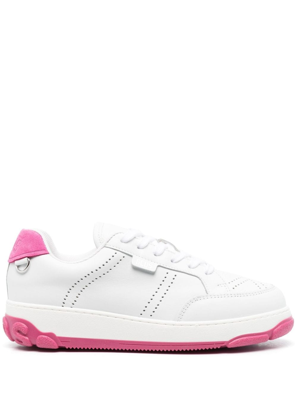chunky lace-up sneakers white pink calf leather perforated detailing front lace-up fastening round toe flat rubber sole Imported Composition Leather 100% SIZE & FIT Measurement HEEL 1.37 in(3.5 cm) Sole height 0.98 in(2.5 cm)