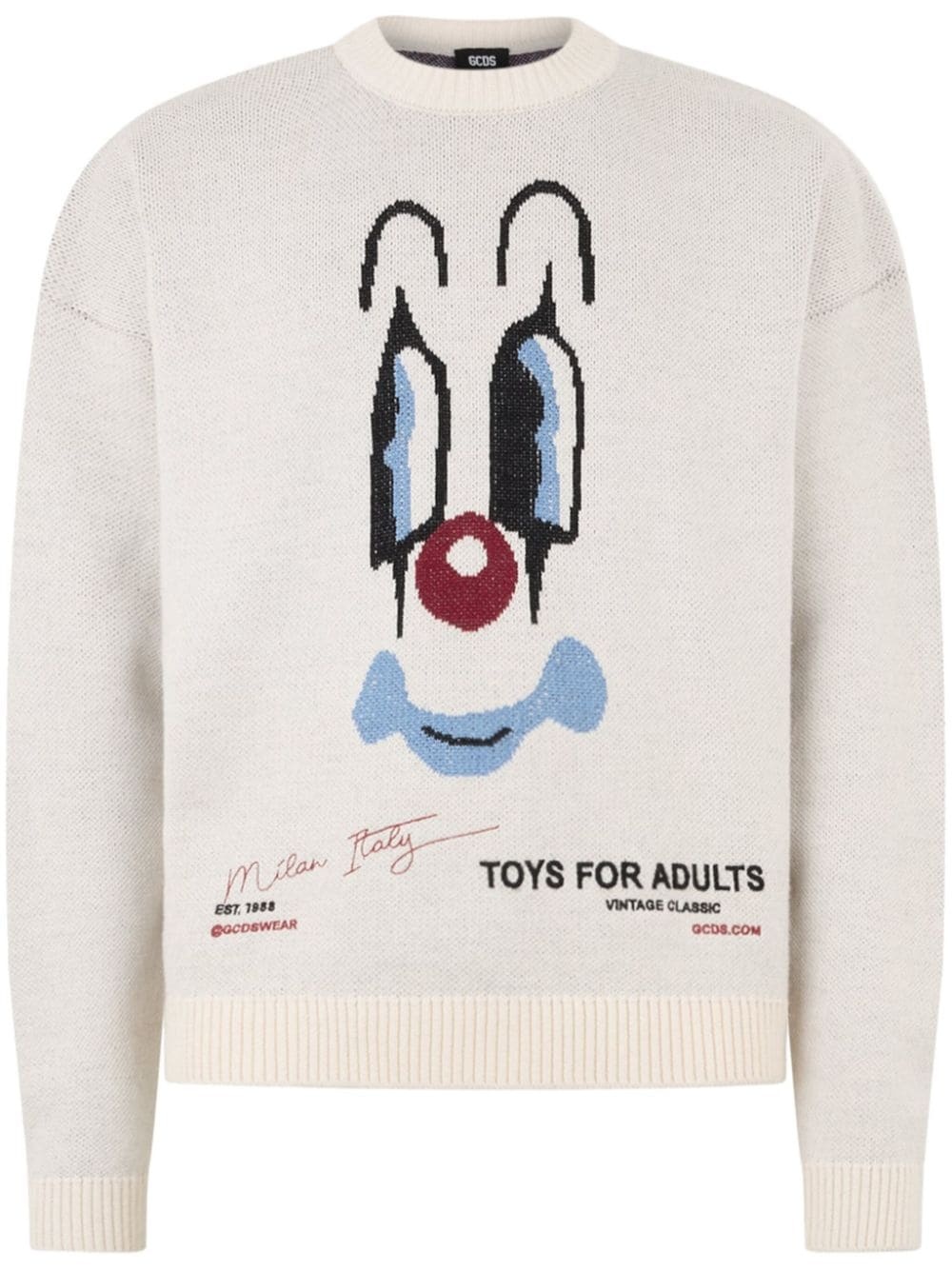 Clown sweater Highlights - White/multicolour - Wool blend - Crew neck - Long sleeves - Clown embroidery to the front - Ribbed cuffs and hem - Internal logo patch Made in Italy Composition Wool 50%, Acrylic 50%