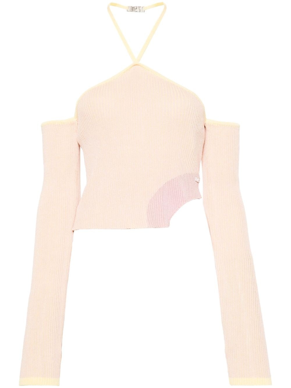 Comma asymmetric ribbed top Highlights - Salmon pink/pink - Ribbed knit - Contrasting trim - Silver-tone logo plaque to the front and rear - Halterneck - Off-shoulder - Long sleeves - Thumb slots - Rear clip fastening - Asymmetric hem - Unlined Made in Italy Composition Viscose 75%, Polyester 25% SIZE & FIT Model measurements Height 5 ft 11 in(1.8 m) Bust/Chest 31.49 in(80 cm) Hips 36.61 in(93 cm) Waist 24.4 in(62 cm) FittingInformation Designed for a close fit throughout Made with a midweight knit, this piece offers some stretch This piece fits true to size – take your usual size Washing instructions Hand Wash