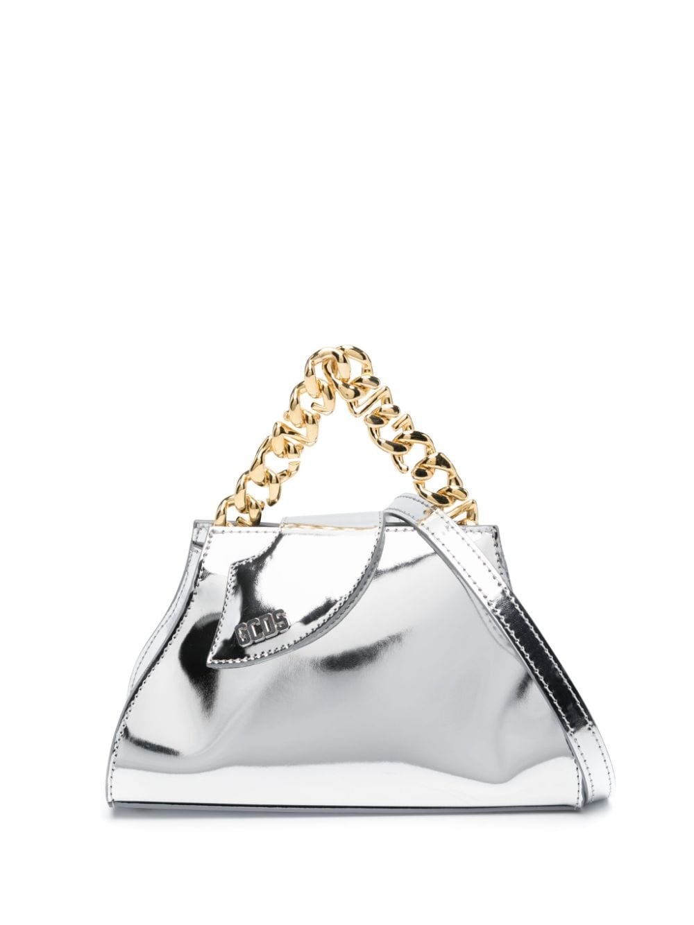 Comma faux-leather crossbody bag Highlights - Silver-tone/gold-tone - Faux leather - Foiled finish - Tonal stitching - Silver-tone logo lettering - Gold-tone hardware - Single chain-link top handle - Adjustable detachable shoulder strap - Foldover top - Main compartment - Internal slip pocket - Full lining Imported Composition Outer: Polyurethane 100% SIZE & FIT Model measurements Height 5 ft 10 in(1.79 m) Bust/Chest 33.07 in(84 cm) Hips 35.82 in(91 cm) Waist 24.01 in(61 cm) Measurement DEPTH 3.54 in(9 cm) HANDLE 1.96 in(5 cm) HEIGHT 5.11 in(13 cm) STRAP 19.68 in(50 cm) WIDTH 8.46 in(21.5 cm)