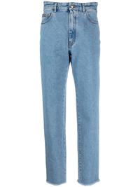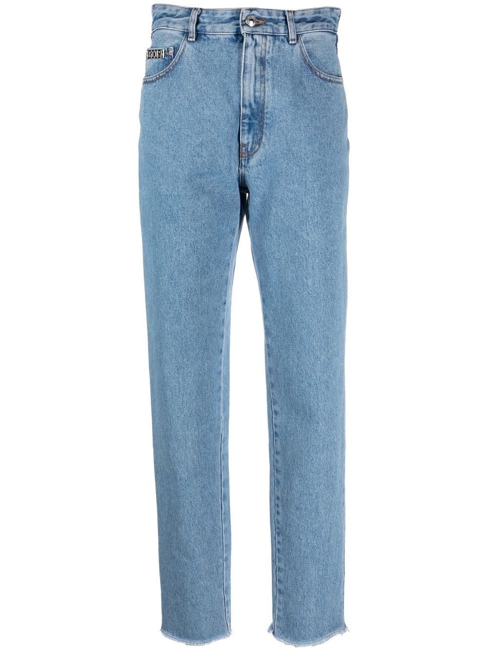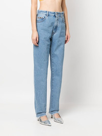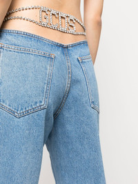 crystal-embellished detail straight jeans cotton blend light blue crystal-embellished logo strap at the rear logo plaque at the front washed denim low-rise rear front button and zip fastening belt loops classic five pockets straight leg frayed hem Made in Italy Composition Outer: Cotton 100%, glass 50%, Brass 50% Lining: Polyester 65%, Cotton 35% SIZE & FIT Model measurements Height 5 ft 10 in(1.77 m) Bust/Chest 31.1 in(79 cm) Hips 34.64 in(88 cm) Waist 25.19 in(64 cm) FittingInformation This piece fits true to size. We recommend you get your regular size Designed to be fitted at the waist and hips, loose over the leg Made with a mid-weight non-stretch fabric Washing instructions Machine Wash