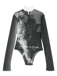 graphic-print bodysuit Highlights - Black/white - Mesh design - Semi-sheer construction - Graphic print to the front - Rear button fastening - Press-stud fastening - Mock neck - Logo patch to the front - Long sleeves - Just a reminder that this piece must be tried on over your own garments. Imported Composition Polyester 100%