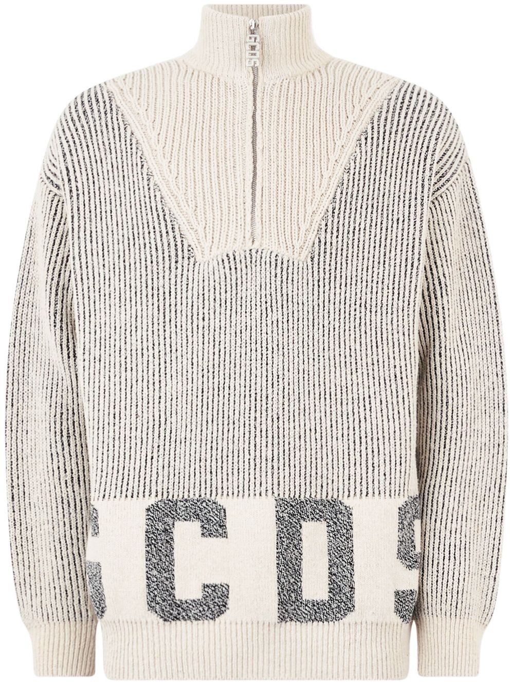 half-zip jumper Highlights - Beige - Cotton blend - Knitted construction - Half front zip fastening - Intarsia-knit logo - Mock neck - Long sleeves - Ribbed cuffs and hem - Straight hem - When buying this unisex item, keep in mind that it is graded in standard men's sizing. Made in Italy Composition Cotton 95%, Other fibres 5%