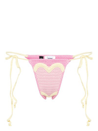 Heart crochet-knit bikini bottoms Highlights - Light pink/light yellow - Cotton - Crochet knit - Heart motif - Side tie fastening - High cut - Slip-on style - Be mindful to try on swimwear over your own garments. Imported Composition Cotton 100% Washing instructions Machine Wash