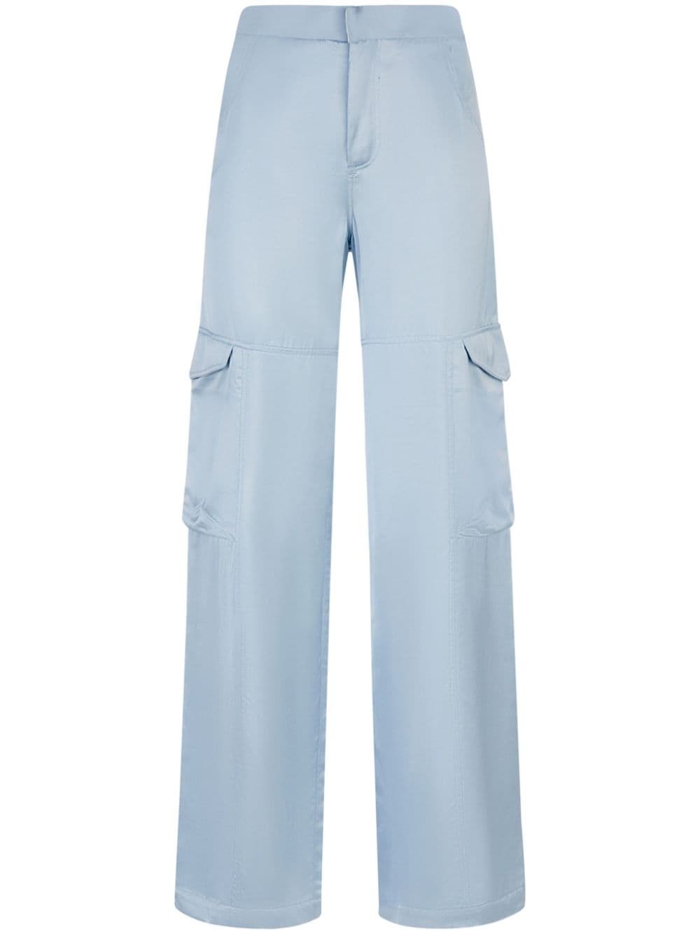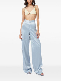 high-waisted satin cargo trousers Highlights - Baby blue - Satin finish - Logo plaque - Seam detailing - High-waisted - Wide leg - Concealed front fastening - Two side inset pockets - Two side cargo pockets - Two rear patch pockets Made in Italy Composition Lining: Viscose 100% Outer: Viscose 100%