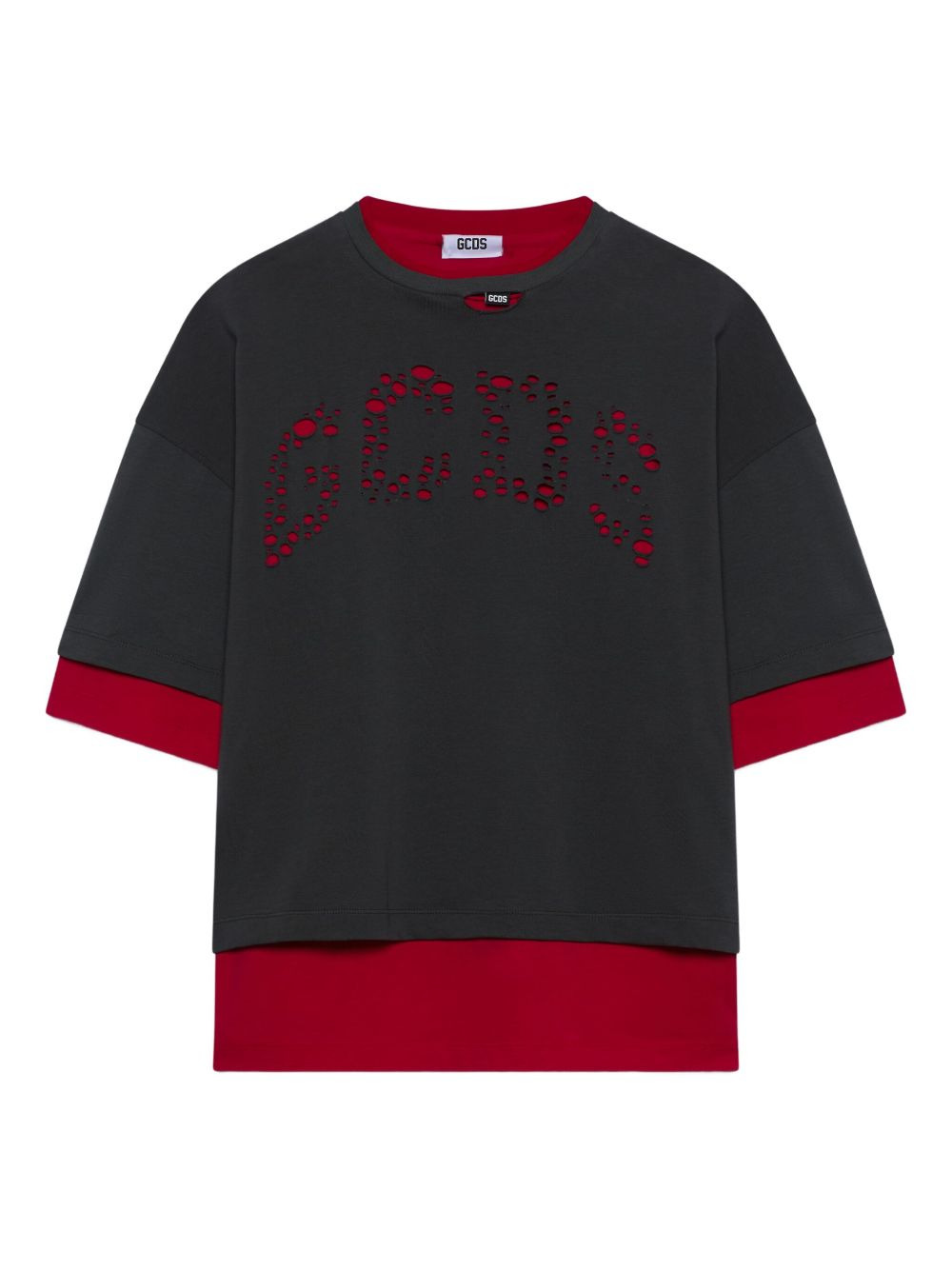laser cut-logo T-shirt Highlights - Dark grey/red - Laser-cut detail - Layered effect - Short sleeves - Round neck Made in Italy Composition Cotton 100% Washing instructions Read Manufacturer Guidelines