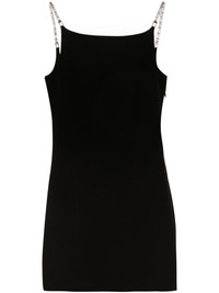 logo-chain cady mini dress Highlights - Black - Stretch-design - Cady texture - Dart detailing - Engraved logo to he straps - Square neck - Open back - Two detachable cube-chain shoulder straps - Sleeveless - Thigh-length - Concealed side zip fastening - Straight hem - Logo-jacquard lining Imported Composition Polyester 88%, Spandex/Elastane 12% SIZE & FIT Model measurements Height 5 ft 11 in(1.8 m) Bust/Chest 30.7 in(78 cm) Hips 35.03 in(89 cm) Waist 24.4 in(62 cm) FittingInformation Designed for a slim fit that sits just away from the body offering a close yet comfortable fit Made from a midweight fabric This piece fits true to size – take your usual size Washing instructions Machine Wash