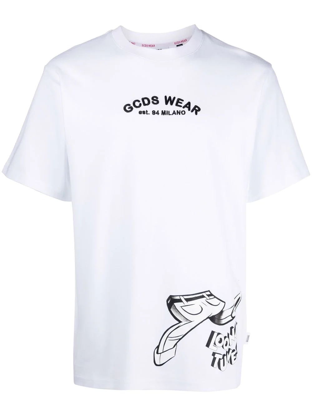 logo crew-neck T-shirt white cotton logo print to the front graphic print crew neck short sleeves Imported Composition Cotton 100% SIZE & FIT Model measurements Height 6 ft 2 in(1.89 m) Bust/Chest 35.43 in(90 cm) Hips 36.61 in(93 cm) Waist 28.74 in(73 cm) FittingInformation This piece fits true to size. We recommend you get your regular size Cut for a relaxed fit Made with a mid-weight fabric Washing instructions Hand Wash