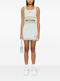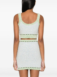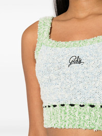logo-embroidered boucle cropped top Highlights - Baby blue/multicolour - Cotton blend - Boucle construction - Two-tone design - Ribbed trim - Embroidered logo to the front - Scoop neck - Sleeveless - Cropped - Straight hem - Unlined Made in Italy Composition Cotton 52%, Viscose 35%, Polyamide 13% SIZE & FIT Model measurements Height 5 ft 11 in(1.8 m) Bust/Chest 30.7 in(78 cm) Hips 35.03 in(89 cm) Waist 24.4 in(62 cm) FittingInformation Designed for a close fit throughout The ribbed hem offers a close, comfortable fit Made with a midweight knit, this piece offers some stretch This piece fits true to size – take your usual size