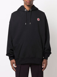 logo-patch cotton hoodie black/red cotton logo patch at the chest drawstring hood long sleeves elasticated cuffs front pouch pocket elasticated hem Imported Composition Cotton 100% SIZE & FIT Model measurements Height 6 ft 1 in(1.85 m) Bust/Chest 38.58 in(98 cm) Hips 37 in(94 cm) Waist 30.31 in(77 cm) FittingInformation This piece fits true to size. We recommend you get your regular size Cut for a loose fit Made with a mid-weight fabric Washing instructions Machine Wash