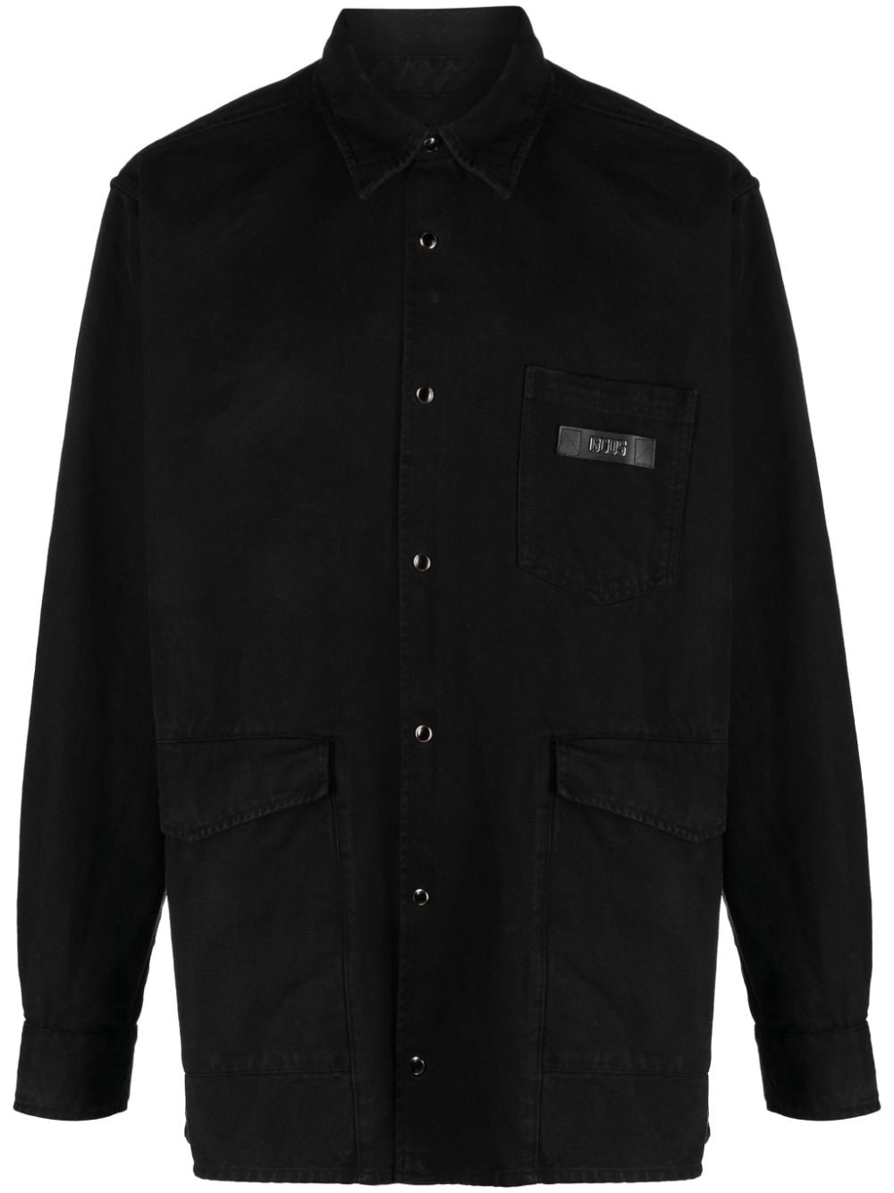 logo-patch cotton shirt Highlights - Black - Cotton - Logo patch at the chest - Classic collar - Front button fastening - Long sleeves - Buttoned cuffs - Chest patch pocket - Two front flap pockets - Straight hem Imported Composition Cotton 100% SIZE & FIT Model measurements Height 6 ft 2 in(1.89 m) Bust/Chest 37.79 in(96 cm) Hips 37 in(94 cm) Waist 29.92 in(76 cm) FittingInformation Designed for a regular fit, allowing for a comfortably loose fit throughout the body Made from a midweight non-stretch fabric This piece fits true to size – take your usual size Washing instructions Machine Wash