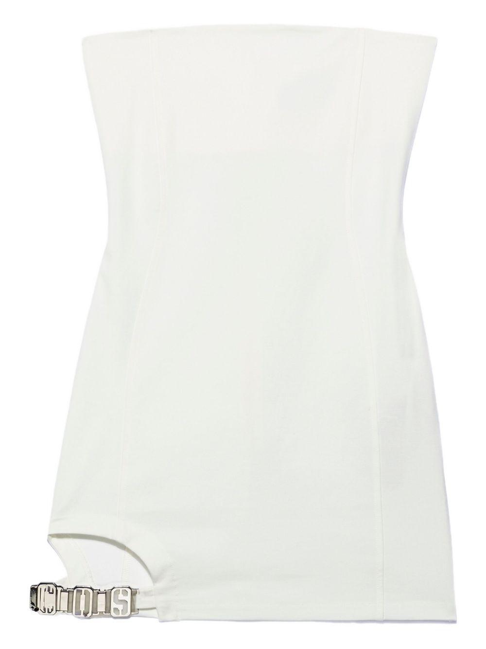 logo-plaque mini dress Highlights - White - Concealed rear zip fastening - Cut-out detailing - Seam detailing - Strapless Made in Italy Composition Cotton 53%, Polyamide 38%, Elastane 9%