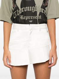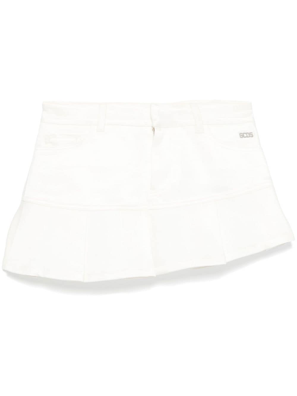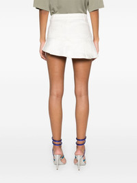logo-plaque mini skirt Highlights - Off-white - Satin finish - Twill weave - Logo plaque - Concealed front button, hook and zip fastening - Belt loops - Classic five pockets - Curved hem - Thigh-length Made in Italy Composition Cupro 53%, Viscose 47% SIZE & FIT Model measurements Height 5 ft 10 in(1.77 m) Bust/Chest 30.7 in(78 cm) Hips 35.03 in(89 cm) Waist 23.62 in(60 cm) FittingInformation This mini-length skirt is intended to be worn just below the waist Made from a midweight non-stretch fabric