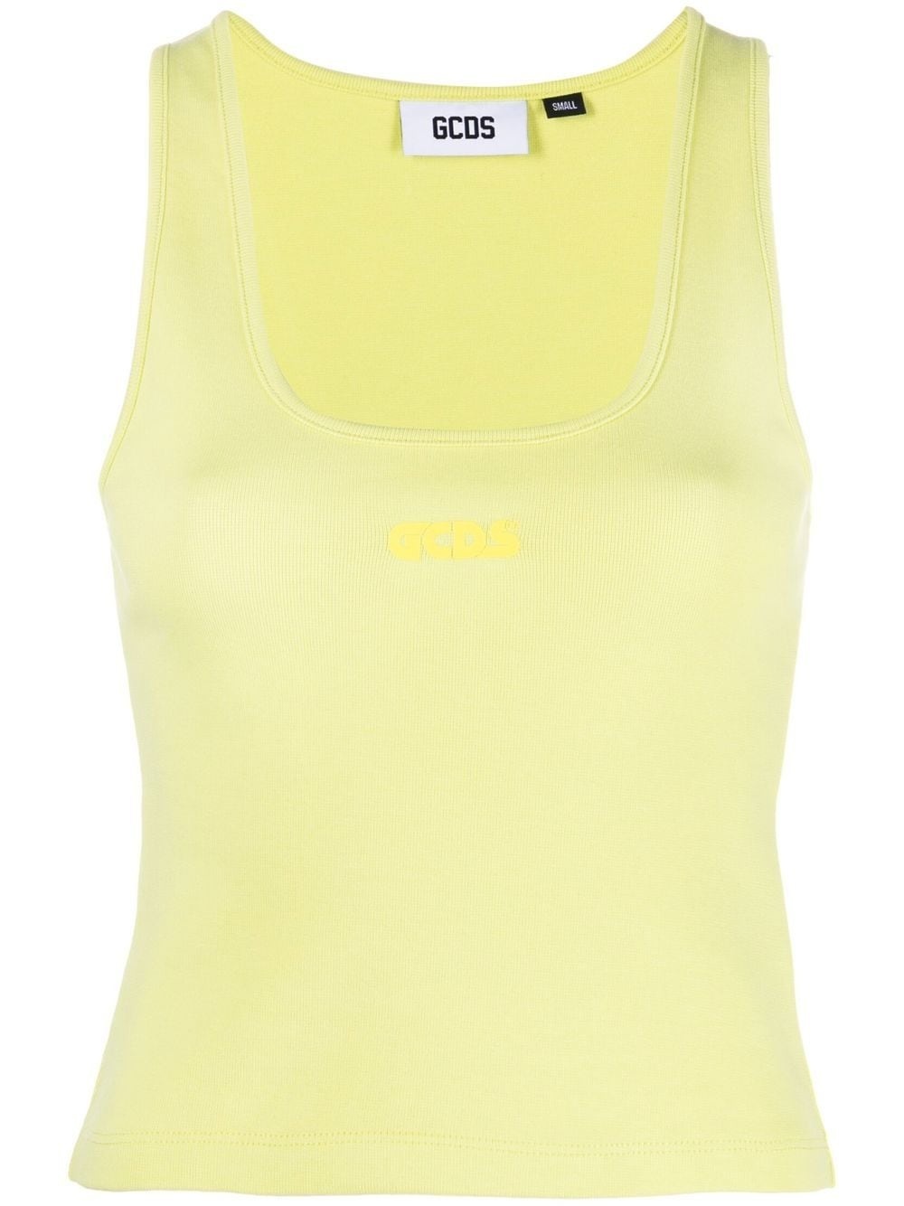 logo-print cotton tank top lime green cotton ribbed knit scoop neck logo print to the front sleeveless straight hem Imported Composition Cotton 100% SIZE & FIT Model measurements Height 5 ft 10 in(1.78 m) Bust/Chest 31.49 in(80 cm) Hips 36.22 in(92 cm) Waist 25.59 in(65 cm) FittingInformation This piece fits true to size. We recommend you get your regular size Cut for a close fit Made with a mid-weight fabric Washing instructions Machine Wash