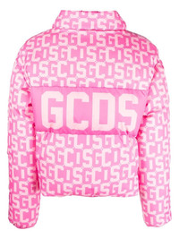logo-print padded jacket fuchsia pink/light pink down-feather filling padded design monogram pattern all-over logo print logo print to the front logo print to the rear classic collar front button fastening long sleeves elasticated cuffs Made in Italy Composition Lining: Feather Down 100%, Polyester 100% Outer: Polyester 100%