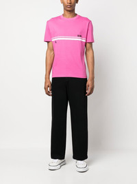 logo-print short-sleeve t-shirt deep pink cotton jersey knit logo print at the chest stripe detailing crew neck short sleeves straight hem Made in Italy Composition Cotton 100% SIZE & FIT Model measurements Height 6 ft 2 in(1.87 m) Bust/Chest 36.22 in(92 cm) Hips 37 in(94 cm) Waist 27.95 in(71 cm) Measurement CHEST 44.09 in(112 cm) LENGTH 28.34 in(72 cm) SLEEVE LENGTH 9.84 in(25 cm) Shoulder Width 19.68 in(50 cm) FittingInformation This piece fits true to size. We recommend you get your regular size Cut for a relaxed fit Made with a mid-weight fabric Washing instructions Machine Wash