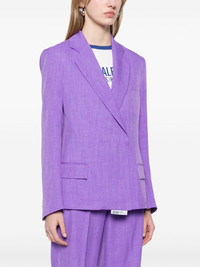 melange-effect blazer Highlights - Violet purple - Double-breasted button fastening - Shoulder pads - Buttoned cuffs - Chest welt pocket Made in Italy Composition Lining: Polyester 100% Outer: Polyester 100% SIZE & FIT Model measurements Height 5 ft 9 in(1.75 m) Bust/Chest 31.88 in(81 cm) Hips 34.64 in(88 cm) Waist 24.01 in(61 cm) FittingInformation Designed for a relaxed fit, this piece allows for comfort and movement when worn The internal shoulder pads offer a structured shape Made from a midweight non-stretch fabric