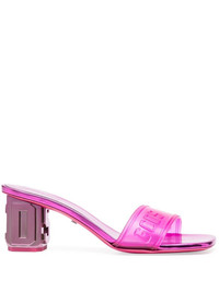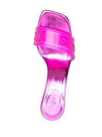 70mm metallic logo sandals Highlights - Pink - Leather sole - Sculpted heel with logo - Embossed logo to the front - Block heel - Open toe Made in Italy Composition Outer: Thermoplastic Polyurethane (TPU) 100% Sole: Calf Leather 100% Lining: Calf Leather 100% SIZE & FIT Measurement HEEL 2.75 in(7 cm)