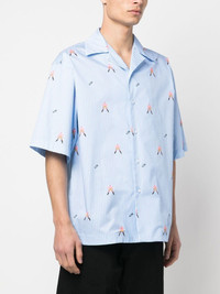 print short-sleeved shirt blue/multicolour cotton notched collar front button fastening short sleeves straight hem Made in Italy Composition Cotton 100% SIZE & FIT Model measurements Height 6 ft 1 in(1.85 m) Bust/Chest 35.82 in(91 cm) Hips 37.79 in(96 cm) Waist 29.13 in(74 cm) FittingInformation This piece fits true to size. We recommend you get your regular size Cut for a loose fit Made with a mid-weight non-stretch fabric Washing instructions Machine Wash