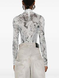 printed bodysuit Highlights - Light grey - Medium grey - Semi-sheer construction - All-over graphic print - Mock neck - Long sleeves - Concealed rear zip fastening - Press-stud fastening - Just a reminder that this piece must be tried on over your own garments. Made in Italy Composition Polyester 100% SIZE & FIT Model measurements Height 5 ft 10 in(1.77 m) Bust/Chest 29.92 in(76 cm) Hips 34.25 in(87 cm) Waist 23.62 in(60 cm) FittingInformation Designed for a close fit throughout Slightly short in the body: this may cause a tight fit around the lower areas of the garment Made from a lightweight non-stretch fabric, this piece offers minimal elasticity when worn This piece fits true to size – take your usual size