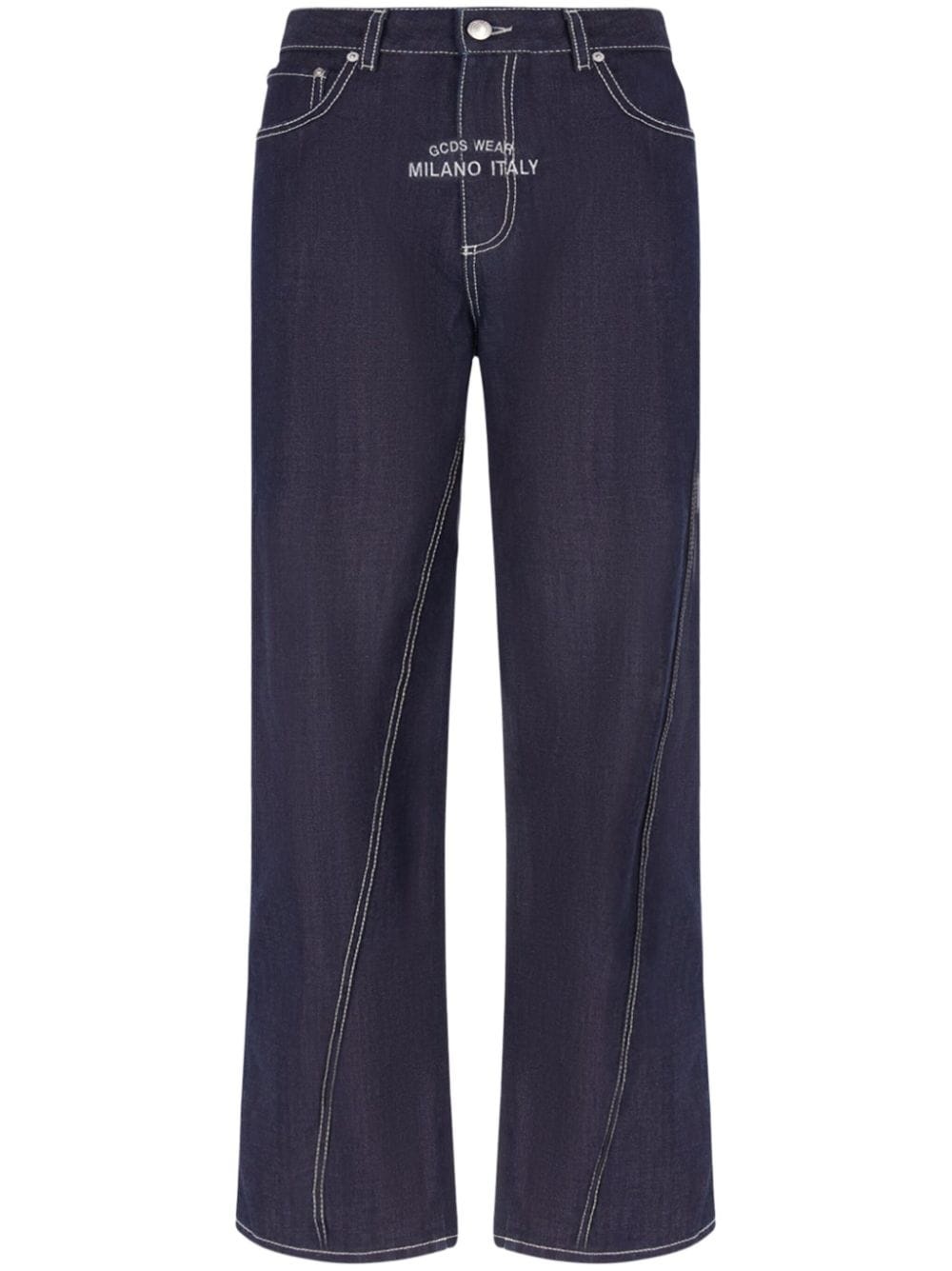 Raw wide-leg jeans Highlights - Blue - Cotton - Denim - Front button fastening - Belt loops - Classic five pockets - Logo patch to the rear - Wide leg Imported Composition Cotton 100%