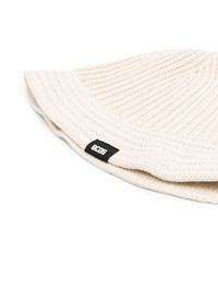 ribbed knit bucket hat cream white cotton blend ribbed knit logo patch to the front flexible brim Made in Italy Composition Cotton 74%, Polyamide 26% SIZE & FIT Measurement BRIM 2.16 in(5.5 cm) CIRCUMFERENCE 22.44 in(57 cm) Washing instructions Hand Wash