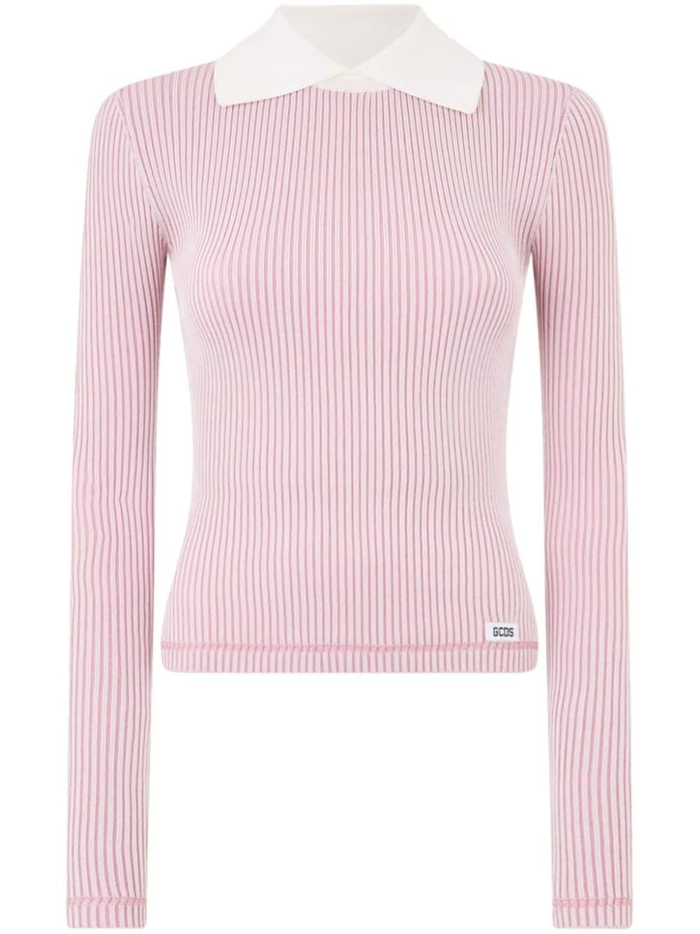 ribbed sweater Highlights - Pink - Ribbed knit - Contrasting collar - Long sleeves - Cropped Imported Composition Viscose 63%, Nylon 37%