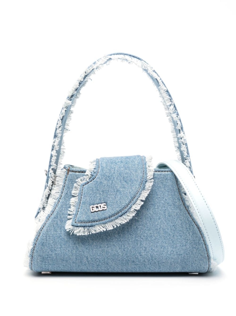 small Comma denim bag Highlights - Blue - Twill weave - Denim - Contrast stitching - Frayed edge - Silver-tone logo plaque to the front - Logo-engraved silver-tone hardware - Debossed internal logo - Magnetic fastening - Single flat top handle - Adjustable detachable shoulder strap - Metal feet - Main compartment - Internal card slot - Logo-jacquard lining Made in Italy Composition Outer: Cotton 100%, Calf Leather 100% Lining: Polyamide 70%, Polyester 30% SIZE & FIT Model measurements Height 5 ft 11 in(1.8 m) Bust/Chest 31.49 in(80 cm) Hips 36.61 in(93 cm) Waist 24.4 in(62 cm) Measurement DEPTH 3.93 in(10 cm) HANDLE 6.29 in(16 cm) HEIGHT 4.72 in(12 cm) STRAP 47.24 in(120 cm)