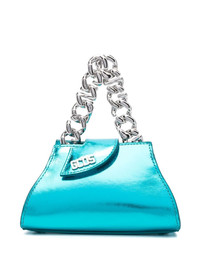 small Comma Transpallic tote bag Highlights - Turquoise blue-green - Calf leather - High-shine finish - Logo plaque - Foldover top with magnetic fastening - Single chain-link top handle - Main compartment Made in Italy Composition Outer: Calf Leather 100% SIZE & FIT Model measurements Height 5 ft 11 in(1.8 m) Bust/Chest 31.49 in(80 cm) Hips 36.41 in(92.5 cm) Waist 25.59 in(65 cm) Measurement DEPTH 3.14 in(8 cm) HANDLE 2.36 in(6 cm) HEIGHT 3.14 in(8 cm) WIDTH 5.9 in(15 cm)
