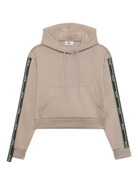 stripe-knit hooded knitted top Highlights - Taupe - Drawstring hood - Front pouch pocket - Stripe detail to the sleeves - Ribbed hem - Ribbed cuffs Imported Composition Fabric 100% Washing instructions Read Manufacturer Guidelines