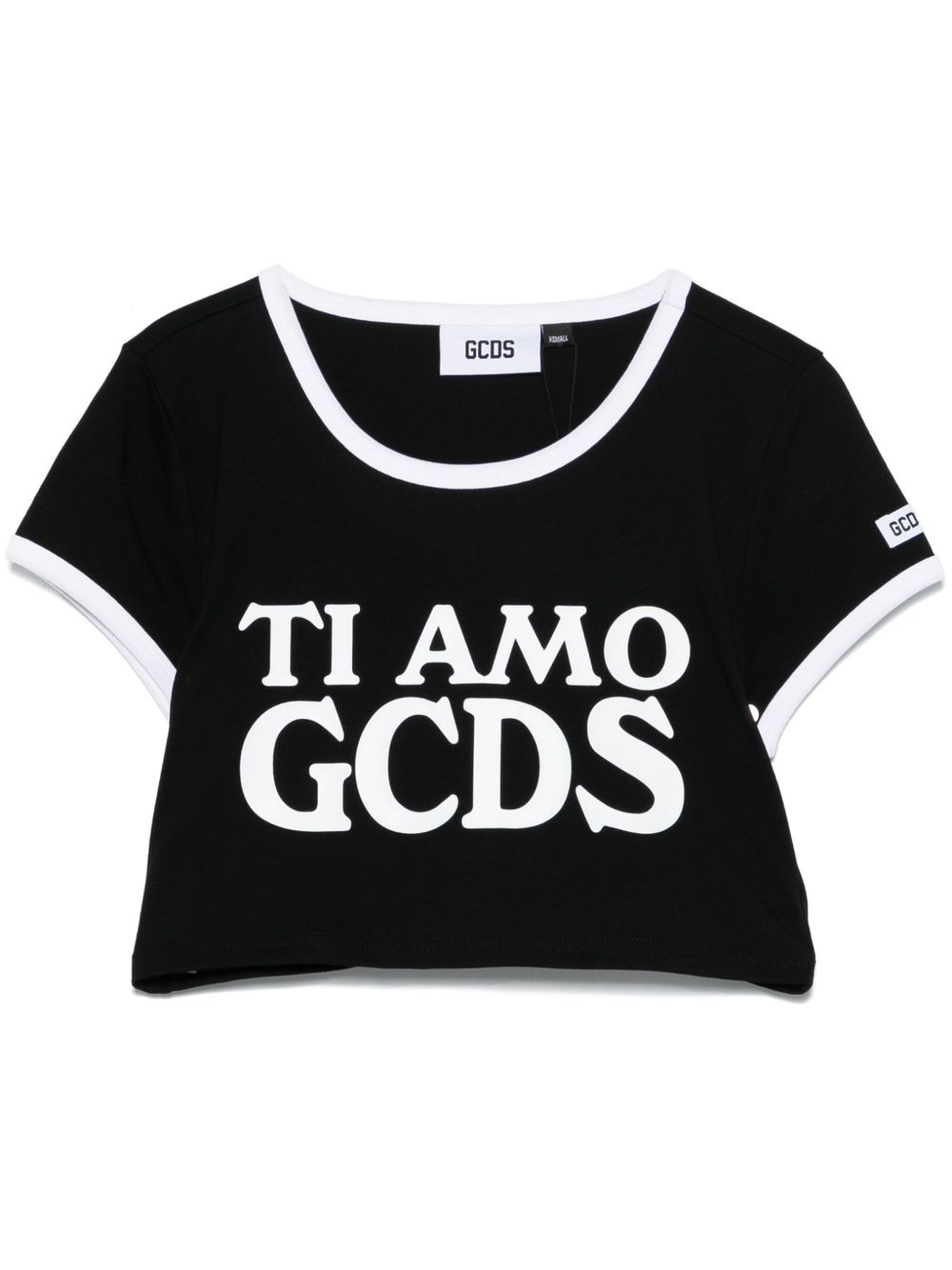 Ti Amo GCDS-print T-shirt Highlights - Black - Crew neck - Short sleeves - Cropped Imported Composition Cotton 100%