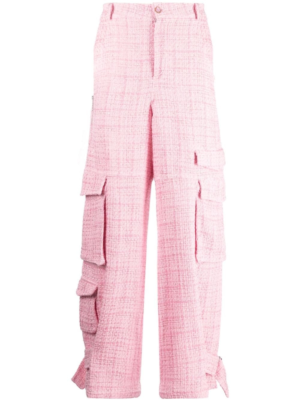 Ultracargo tweed wide-leg trousers Highlights - Light pink - Knitted construction - Tweed - Logo patch to the rear - Concealed fly and button fastening - Two side inset pockets - Rear flap pocket - Multiple cargo pockets - Belted cuffs - High waist - Straight hem Made in Italy Composition Cotton 44%, Polyester 30%, Acrylic 16%, Polyamide 10% SIZE & FIT Model measurements Height 6 ft 2 in(1.87 m) Bust/Chest 36.41 in(92.5 cm) Hips 37 in(94 cm) Waist 29.52 in(75 cm) FittingInformation Designed for a straight-leg, allowing for an unrestricted and comfortable fit over the leg The adjustable tabs allow for fitted preferences Made from a midweight non-stretch fabric This piece fits true to size – take your usual size Washing instructions Dry Clean Only