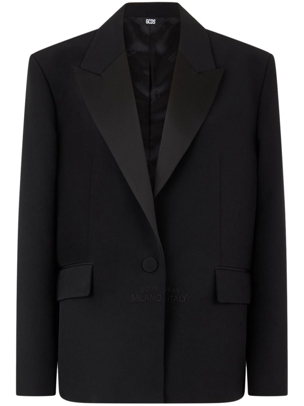 v-neck blazer Highlights - Black - Front button fastening - Peak lapels - Plunging v-neck - Long sleeves - Two side flap pockets - Embroidered logo to the front - Straight hem Made in Italy Composition Polyester 90%, Elastane 10%