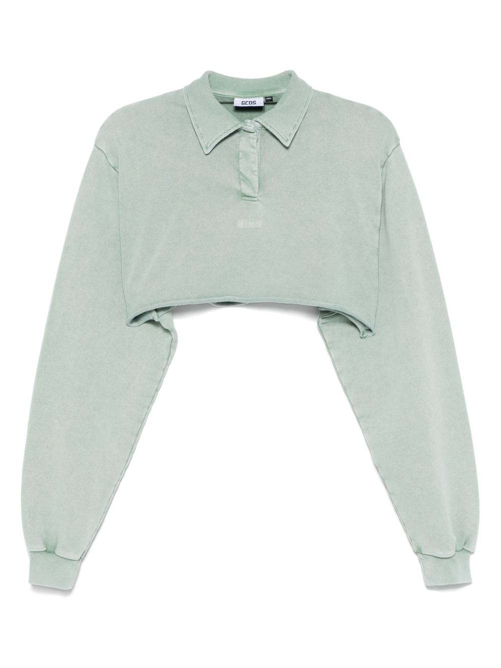 washed-effect cropped polo shirt Highlights - Sage green - Short front button fastening - Ribbed cuffs - Shoulder pads - Logo patch to the front Made in Italy Composition Cotton 100% SIZE & FIT Model measurements Height 5 ft 11 in(1.8 m) Bust/Chest 31.49 in(80 cm) Hips 35.82 in(91 cm) Waist 24.8 in(63 cm) FittingInformation Designed for an oversized fit, offering additional room throughout The internal shoulder pads offer a structured shape Made from a midweight non-stretch fabric, this piece offers minimal elasticity when worn