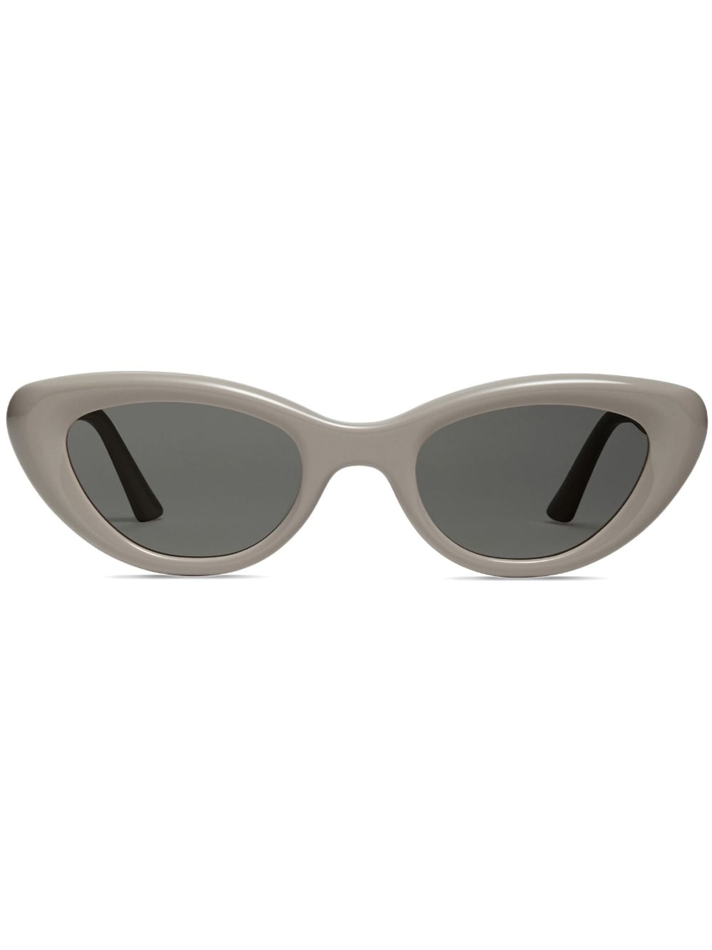 Conic tinted sunglasses light grey cat-eye frame grey tinted lenses embossed logo to the side straight arms curved tips UV-protective lenses These glasses come with a protective case. Imported Composition Acetate 100% SIZE & FIT Measurement Arm Length 5.7 in(14.5 cm) Bridge Width 0.9 in(2.3 cm) Lens Diameter 2 in(5.1 cm) Total Width 5.94 in(15.1 cm)