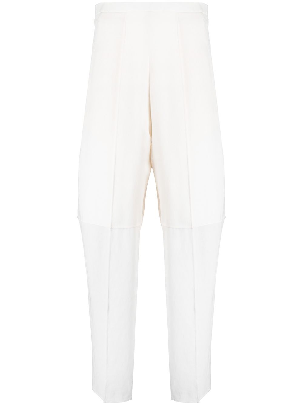 high-waisted pressed-crease straight-leg trousers cream white pressed crease high waist side zip fastening straight leg two side slit pockets Imported Composition Polyester 100% SIZE & FIT Model measurements Height 5 ft 9 in(1.76 m) Bust/Chest 29.13 in(74 cm) Hips 33.07 in(84 cm) Waist 22.83 in(58 cm) FittingInformation This piece fits true to size. We recommend you get your regular size Designed to be fitted at the waist, loose over the leg Made with a mid-weight non-stretch fabric Washing instructions Dry Clean Only