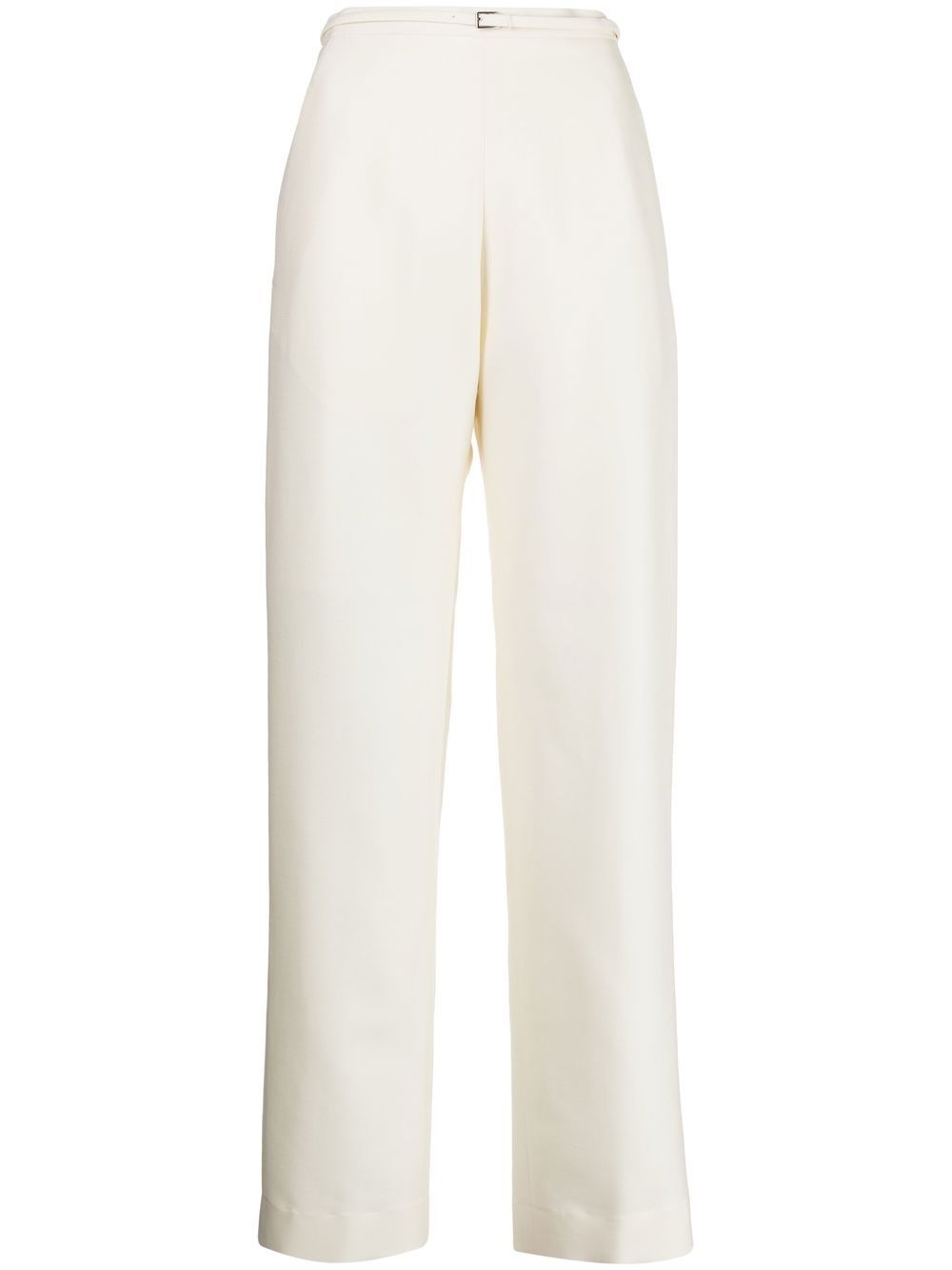 wide-leg wool-silk trousers cream white virgin wool-silk blend high-waisted wide leg belted waist pressed crease slip pockets to the sides Imported Composition Virgin Wool 90%, Silk 10%
