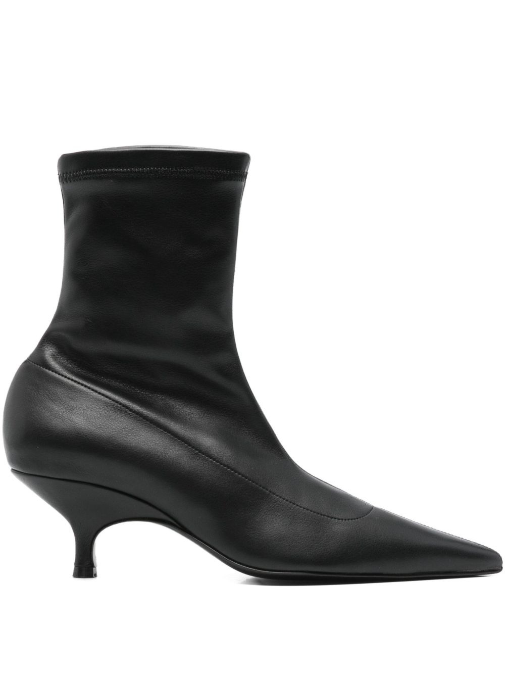 50mm Mia pointed-toe sock boots Highlights - Black - Calf leather - Pointed toe - Sock-like topline - Kitten heel - Slip-on style Made in Italy Composition Lining: Calf Leather 100%, Fabric 100% Outer: Polyurethane 100% Sole: Calf Leather 100%, Rubber 100% SIZE & FIT Measurement HEEL 2.36 in(6 cm)