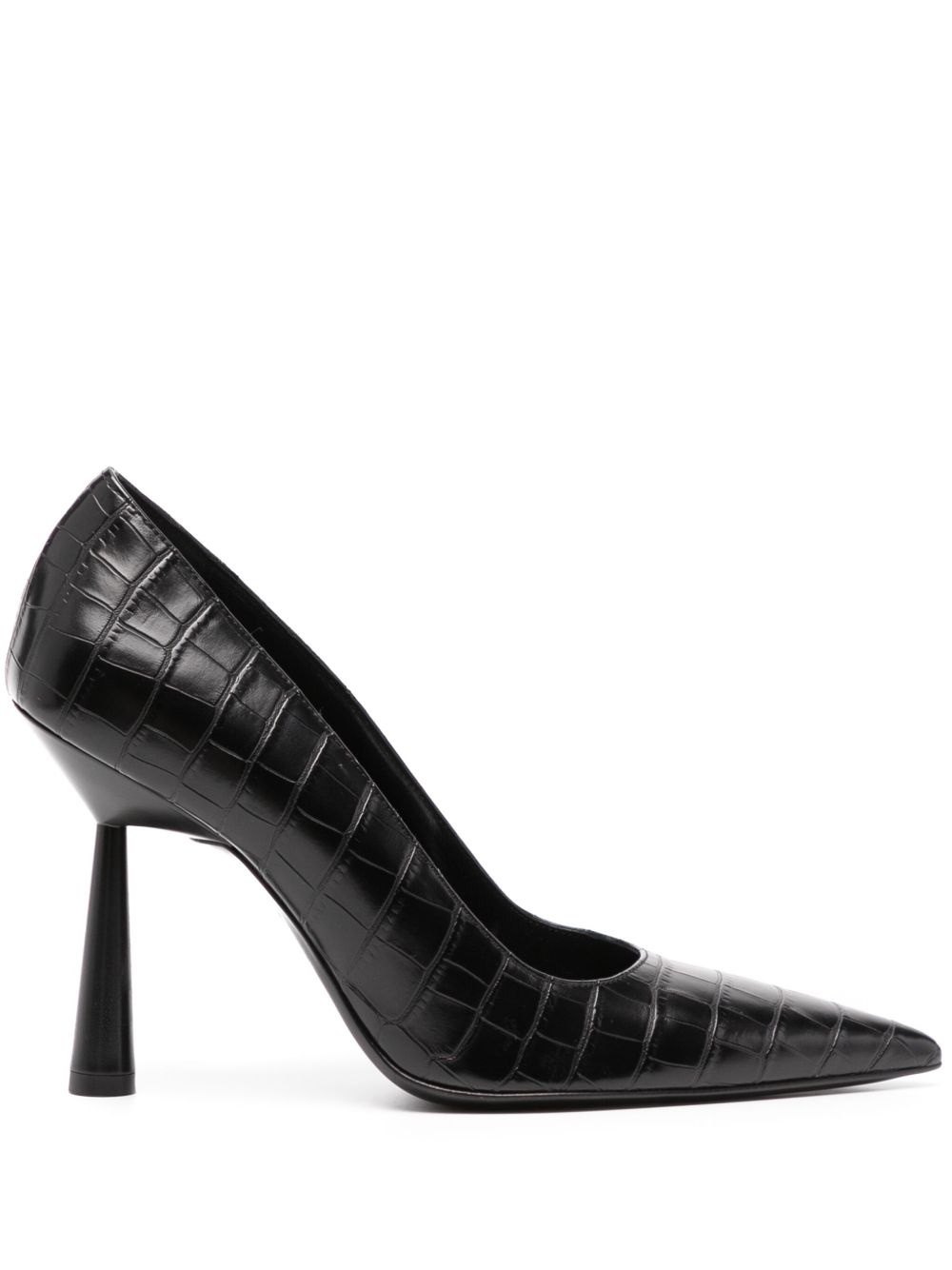 Balantine 70mm leather pumps Highlights - Jet black - Calf leather - Embossed crocodile effect - Pointed toe - Slip-on style - Branded leather insole - 70mm cone heel - Leather sole Made in Italy Composition Outer: Crocodile Embossed Leather 100% Lining: Calf Leather 100% Sole: Calf Leather 100% SIZE & FIT Measurement HEEL 2.75 in(7 cm) HEIGHT 2.36 in(6 cm)