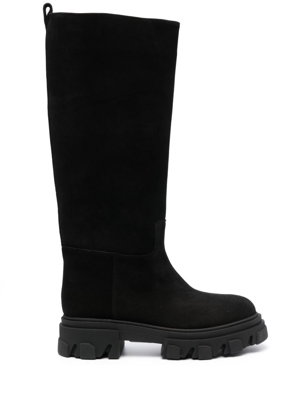chunky-sole suede boots Highlights - Black - Calf suede/calf leather - Round toe - Calf-length - Double pull-tab at the opening - Chunky rubber sole Made in Italy Composition Suede 100% SIZE & FIT Measurement CIRCUMFERENCE 16.53 in(42 cm) HEEL 16.14 in(41 cm) HEIGHT 16.14 in(41 cm) Sole height 1.57 in(4 cm)