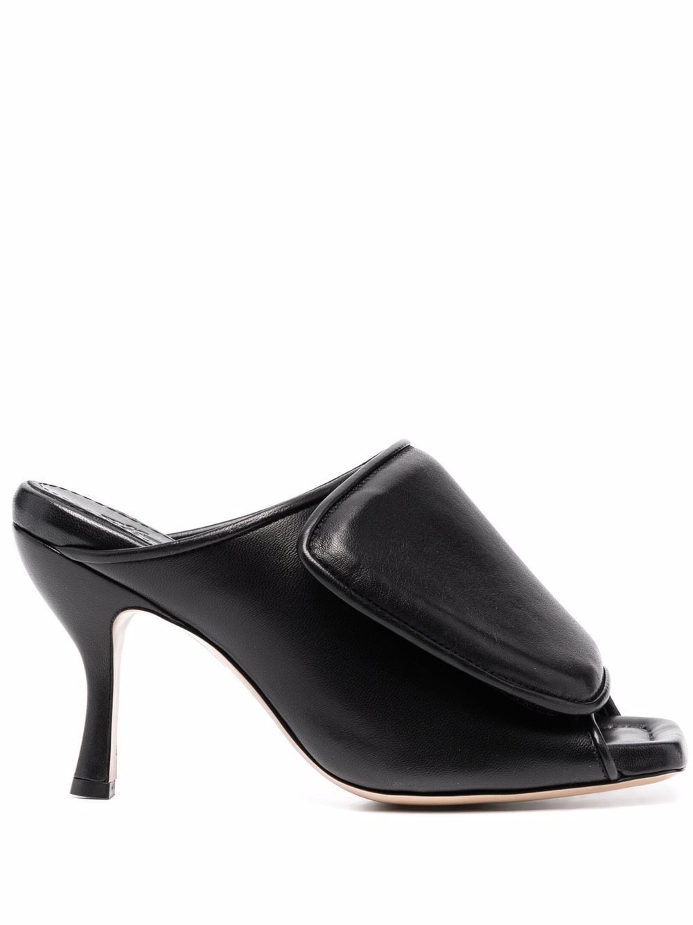 Gia pumps black leather slip-on style open toe branded insole high heel Made in Italy Composition Outer: Calf Leather 100% Sole: Calf Leather 100% Lining: Calf Leather 100% SIZE & FIT Measurement HEEL 3.54 in(9 cm) Sole height 0.39 in(1 cm)