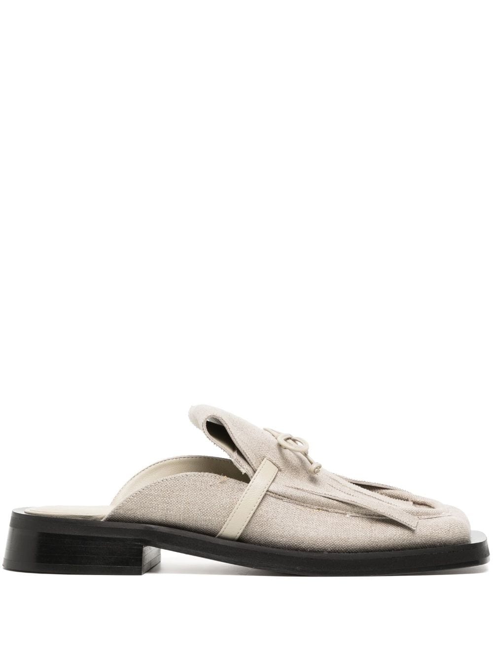 GIA/RHW Rosie 40 linen mules GIABORGHINI teamed up with model and entrepreneur Rosie Huntington-Whiteley to create the GIA/RHW line — a modern and minimalistic collction. A case in point, these mules are embellished with tonal tassels and bow detail. Highlights - Light beige - Linen/calf leather - Tassel detail - Bow detailing - Square toe - Slip-on style - Branded insole - Flat sole Made in Italy Composition Sole: Calf Leather 100% Lining: Calf Leather 100% Outer: Other fibres 100% SIZE & FIT Measurement HEEL 1.18 in(3 cm) Sole height 0.39 in(1 cm)