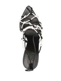 strappy pointed 100mm pumps ivory white/black calf leather two-tone design multi-way strap design knot detailing pointed toe branded leather insole high stiletto heel Made in Italy Composition Lining: Calf Leather 100% Sole: Calf Leather 100% Outer: Calf Leather 100% SIZE & FIT Measurement HEEL 3.93 in(10 cm) Sole height 0.39 in(1 cm)