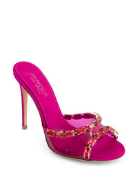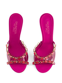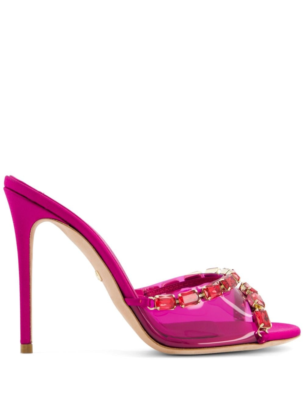 90mm crystal-embellished sandals Highlights - Fuchsia pink - Leather - Crystal embellishment - Open toe - Slip-on style - Branded footbed - 90mm stiletto heel - Leather sole Made in Italy Composition PVC 100% Washing instructions Do Not Wash/Do Not Dry Clean