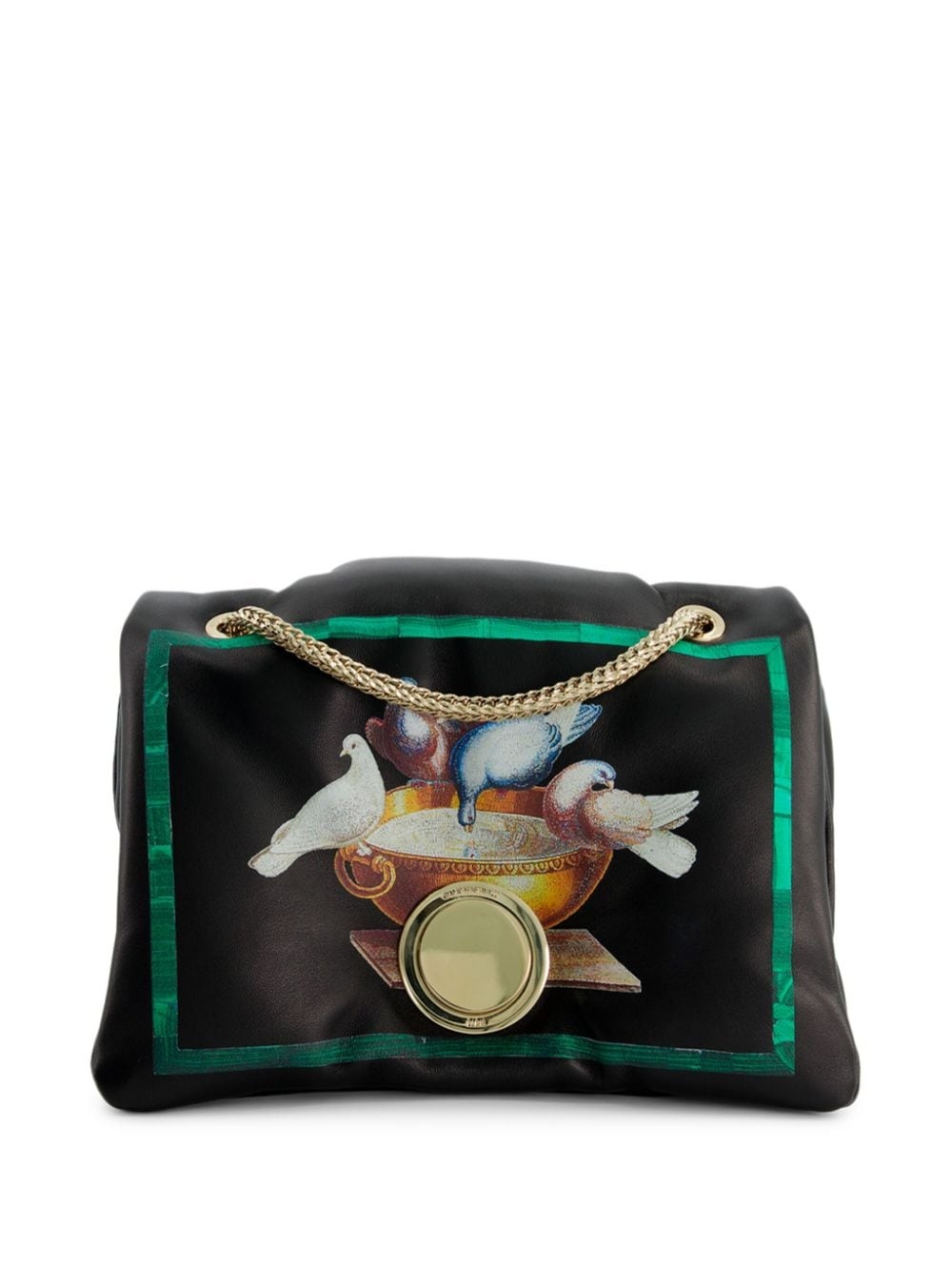 Birds Airbag leather mini bag Highlights - Black/multicolour - Leather - Gold-tone hardware - Logo plaque - Illustration-style print - Chain-link shoulder strap Made in Italy Composition Top: Leather 100%