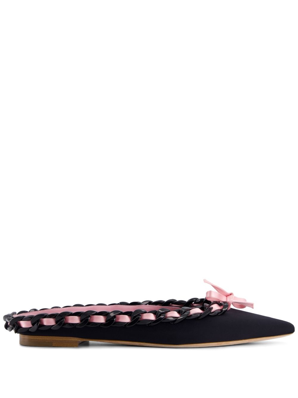 bow-detail slippers Highlights - Black - Pointed toe - Branded leather insole - Chain-link trim Made in Italy Composition Outer: Nylon 80%, Elastane 20% Lining: Calf Leather 100% Sole: Calf Leather 100%, Rubber 100%