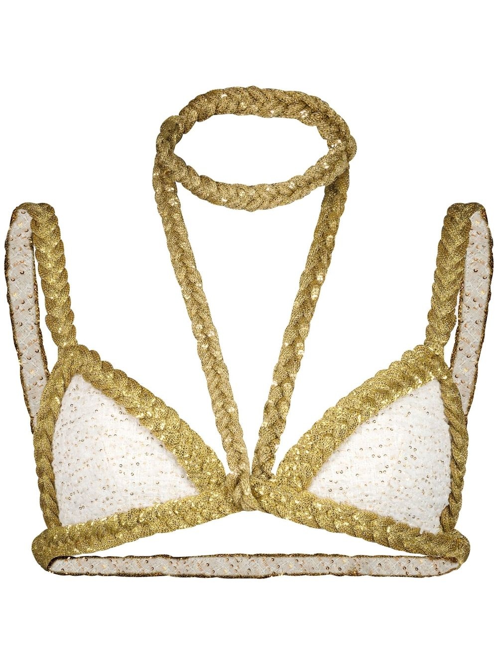 braided-trim tweed crop top For SS23, Giambattista Valli continues to showcase its romantic aesthetic, as shown on this ivory white tweed top. Embroidered with sequins, hand-sewn golden braiding is showcased throughout for a contemporary look. Made in Italy Composition Polyamide 43%, Viscose 24%, Cotton 18%, other fibers 15% Washing instructions Dry Clean Only