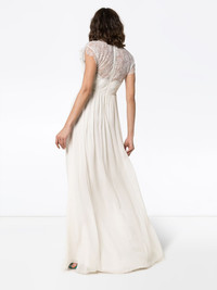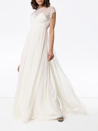 cap sleeve lace insert empire line maxi dress Taking inspiration from intricate interiors and elaborate decor, Giambattista Valli is renowned for its sumptuous gowns that can transform a woman’s persona. This white silk lace-insert long dress from Giambattista Valli features a round neck, a rear zip fastening, cap sleeves with a scalloped hem, a lace chest and back and an empire silhouette. Made in Italy Composition Lining: Viscose 65%, Polyamide 35% Outer: Silk 100% SIZE & FIT Model measurements Height 5 ft 10 in(1.78 m) Bust/Chest 33.85 in(86 cm) Hips 34.25 in(87 cm) Waist 24.01 in(61 cm) Washing instructions Dry Clean Only